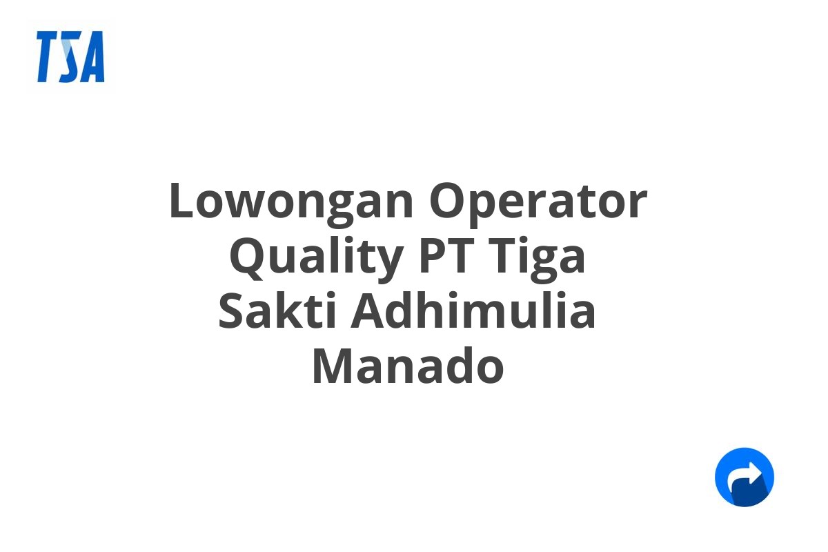 Saat ini, PT Tiga Sakti Adhimulia Manado sedang membuka lowongan kerja untuk posisi Operator Quality di Manado.