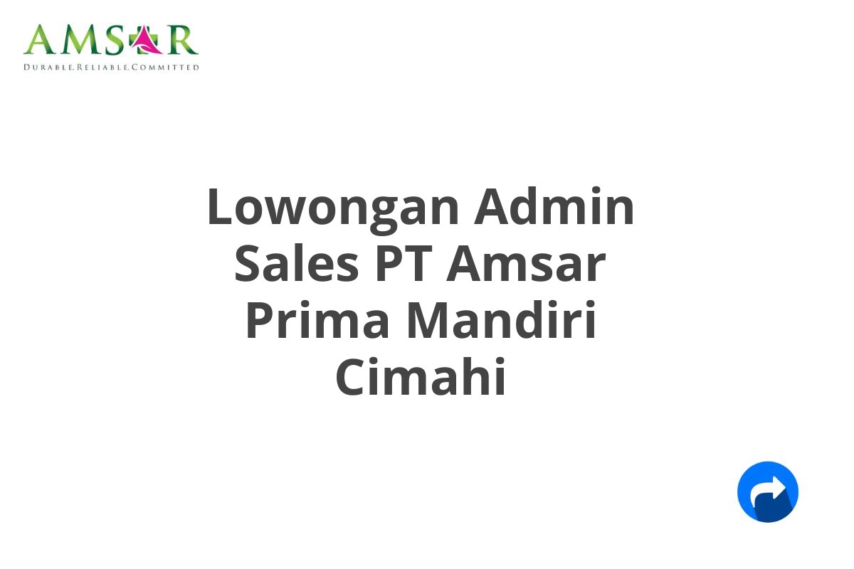 Saat ini, PT Amsar Prima Mandiri sedang membuka lowongan kerja untuk posisi Admin Sales yang berlokasi di Cimahi.