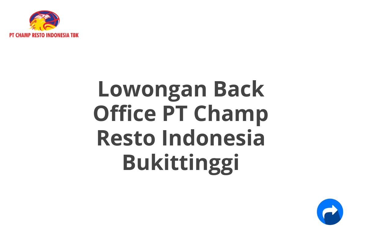 Lowongan Back Office PT Champ Resto Indonesia Bukittinggi Tahun 2026 [Apply]