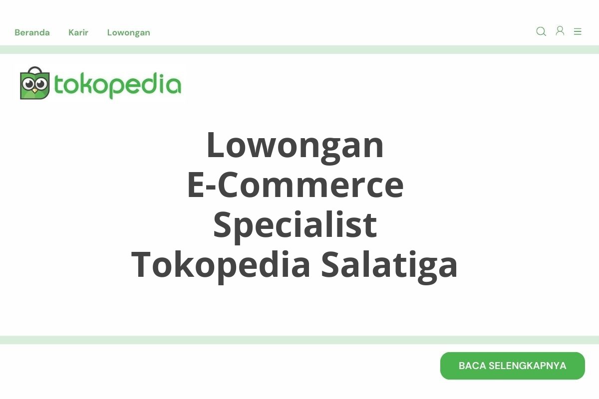 Lowongan E-Commerce Specialist Tokopedia Salatiga Tahun 2026