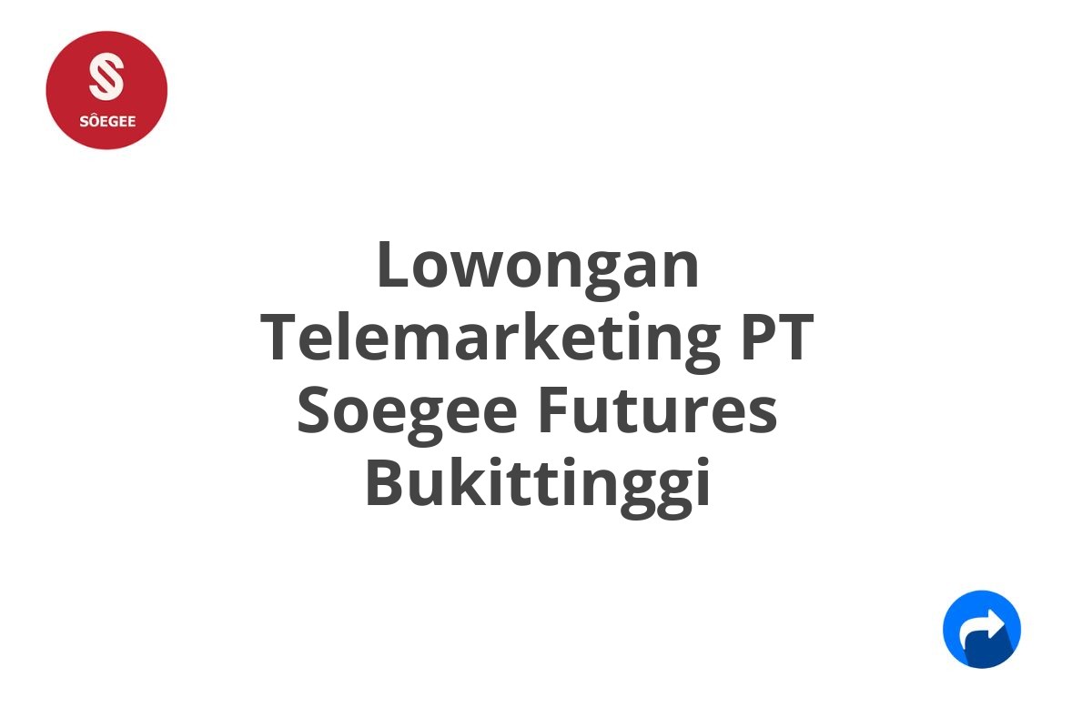 Lowongan Telemarketing PT Soegee Futures Bukittinggi Terbaru 2026