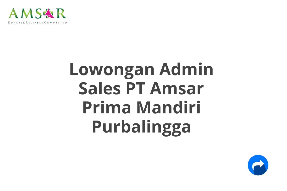 Saat ini, PT Amsar Prima Mandiri membuka lowongan kerja untuk posisi Admin Sales yang berlokasi di Purbalingga.