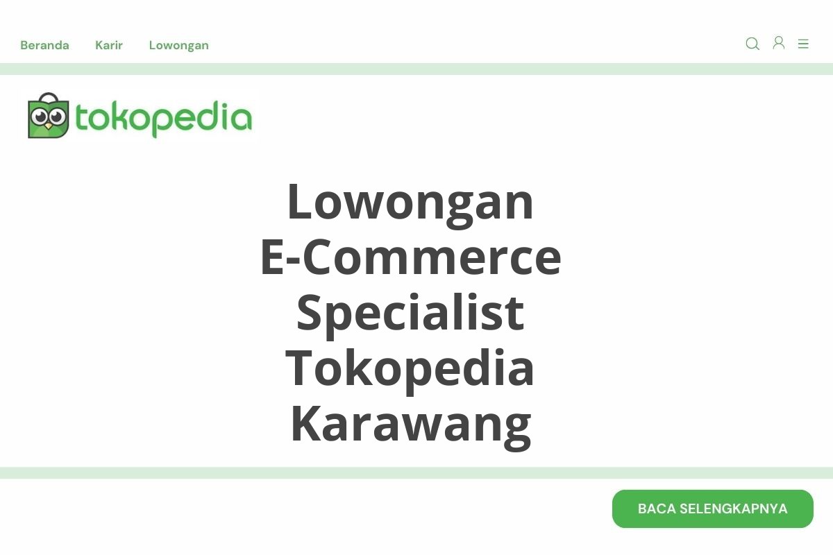Ingin membangun karier di perusahaan e-commerce terkemuka di Indonesia? Tokopedia, salah satu platform e-commerce terbesar di Tanah Air, sedang membuka lowongan untuk posisi E-Commerce Specialist di Karawang. Kesempatan emas ini menawarkan gaji yang kompetitif dan pengalaman kerja yang berharga di industri yang terus berkembang.
