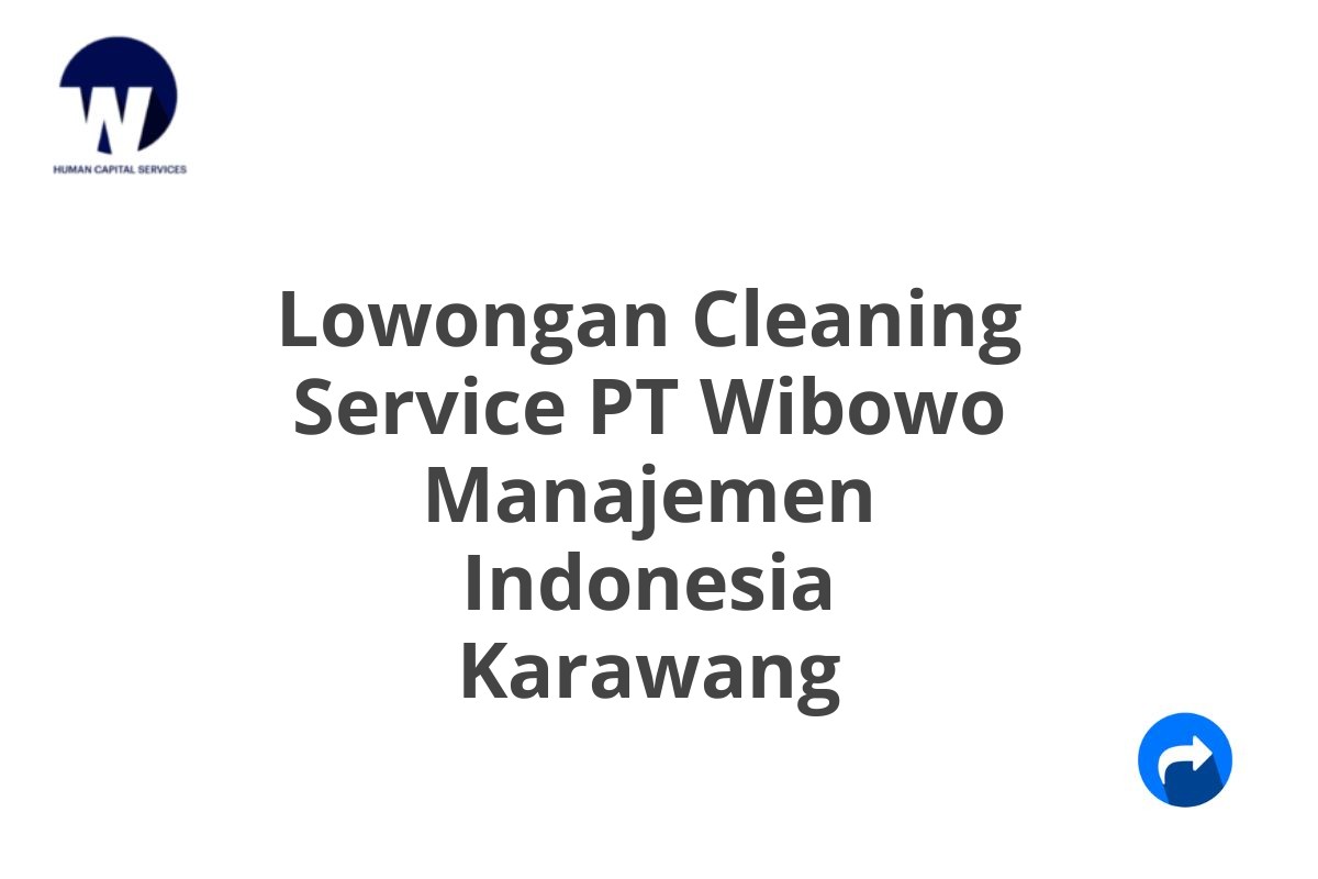 Saat ini, PT Wibowo Manajemen Indonesia sedang membuka lowongan pekerjaan untuk posisi Cleaning Service di Karawang, untuk mendukung operasional perusahaan dan menjaga kebersihan lingkungan kerja.