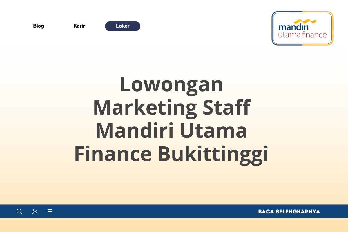 Lowongan Marketing Staff Mandiri Utama Finance Bukittinggi Terbaru 2026