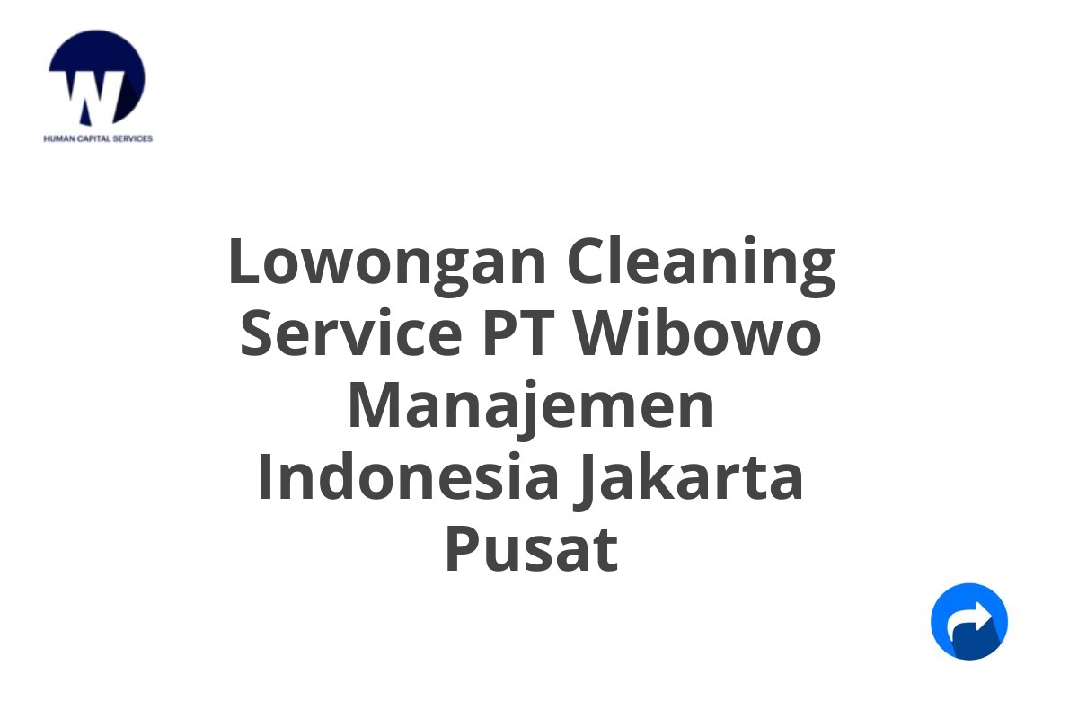 Saat ini, PT Wibowo Manajemen Indonesia membuka lowongan kerja untuk posisi Cleaning Service, untuk ditempatkan di kantor pusat mereka di Jakarta Pusat.