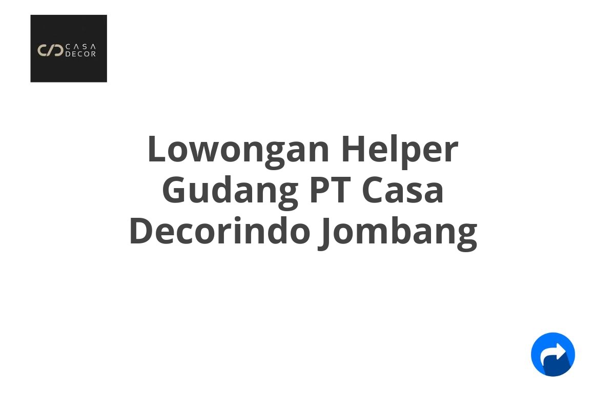 Saat ini, PT Casa Decorindo membuka lowongan kerja untuk posisi Helper Gudang di Jombang. Jika Anda memiliki semangat kerja keras, dedikasi tinggi, dan ingin berkembang bersama kami, segera daftarkan diri Anda!