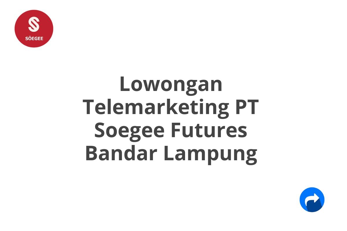 Tertarik membangun karir di dunia finansial? PT Soegee Futures Bandar Lampung membuka peluang bagi Anda yang ingin berkarir sebagai Telemarketing dengan gaji yang menarik dan kesempatan berkembang.