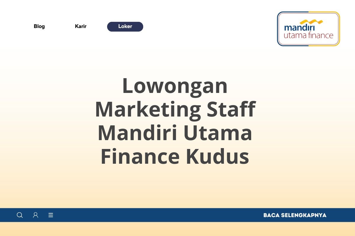 Artikel ini akan memberikan informasi lengkap mengenai lowongan Marketing Staff di Mandiri Utama Finance Kudus, mulai dari kualifikasi, tanggung jawab, hingga cara melamar. Simak informasinya sampai akhir agar Anda tidak ketinggalan kesempatan emas ini.