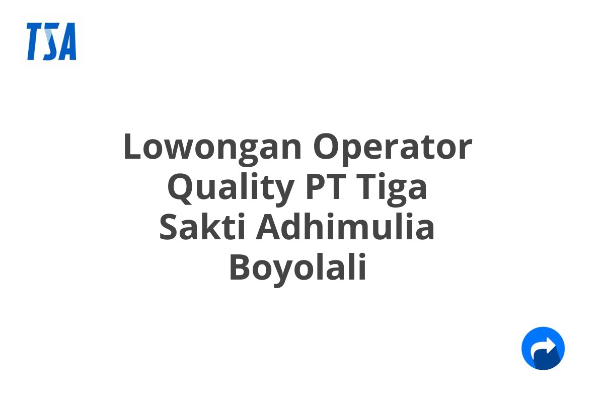 Lowongan Operator Quality PT Tiga Sakti Adhimulia Boyolali