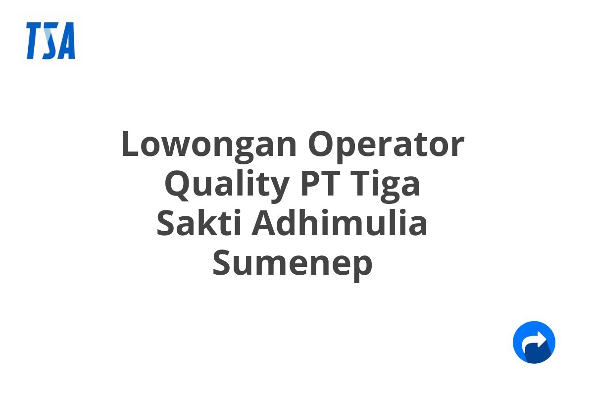 Lowongan Operator Quality PT Tiga Sakti Adhimulia Sumenep Tahun 2026 [Cepat]