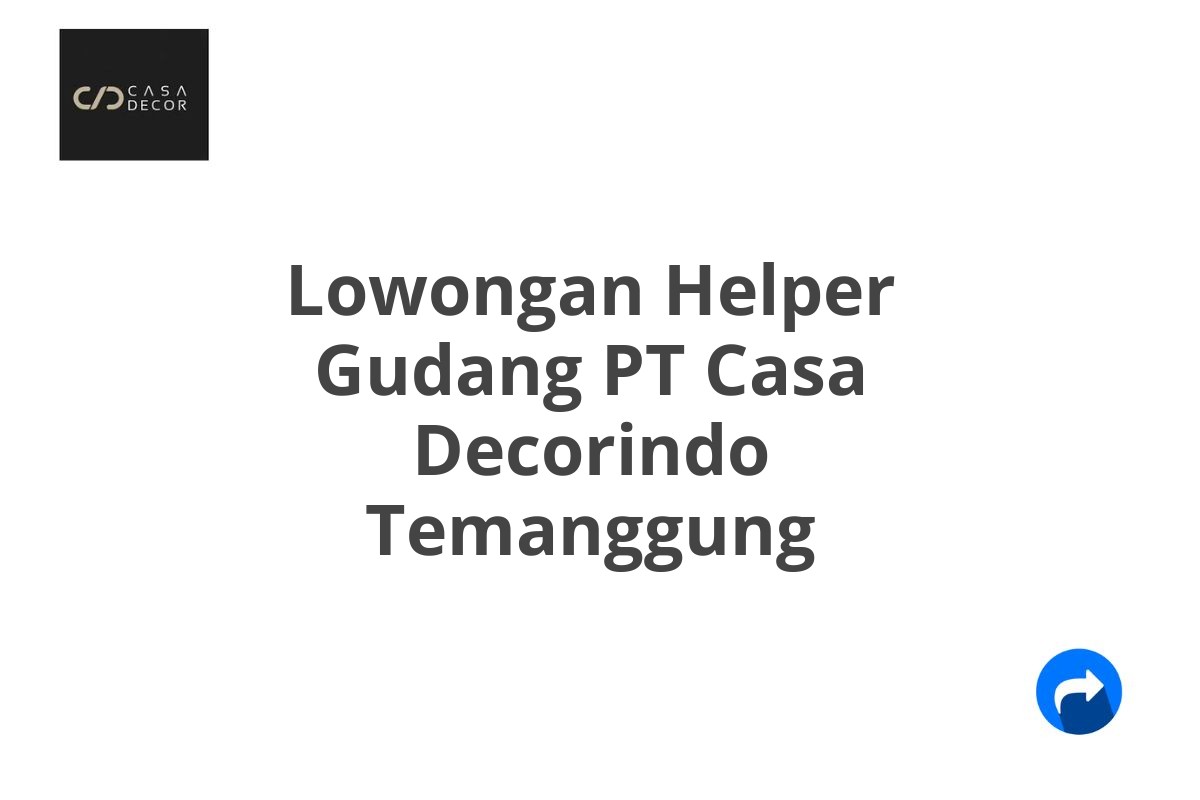 Ingin bekerja di perusahaan terpercaya dengan gaji yang kompetitif? PT Casa Decorindo, perusahaan terkemuka di bidang [sebutkan bidang usaha PT Casa Decorindo], sedang membuka lowongan untuk posisi Helper Gudang di Temanggung. Lowongan ini cocok untuk kamu yang ingin mengembangkan karir di bidang logistik dan memiliki semangat tinggi untuk bekerja dalam tim. Yuk, simak informasi selengkapnya di artikel ini!