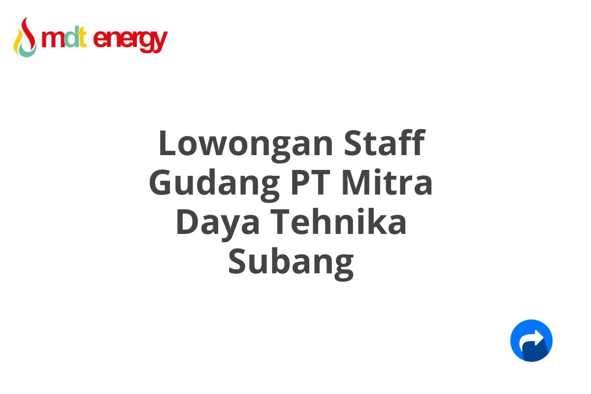 Lowongan Staff Gudang PT Mitra Daya Tehnika Subang Terbaru [Cepat]