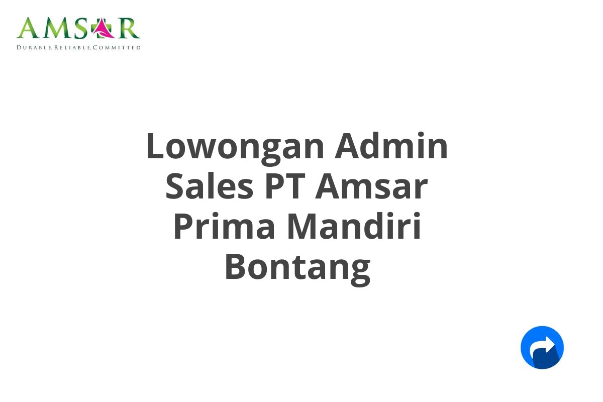 Saat ini, PT Amsar Prima Mandiri sedang membuka lowongan pekerjaan untuk posisi Admin Sales di Bontang.