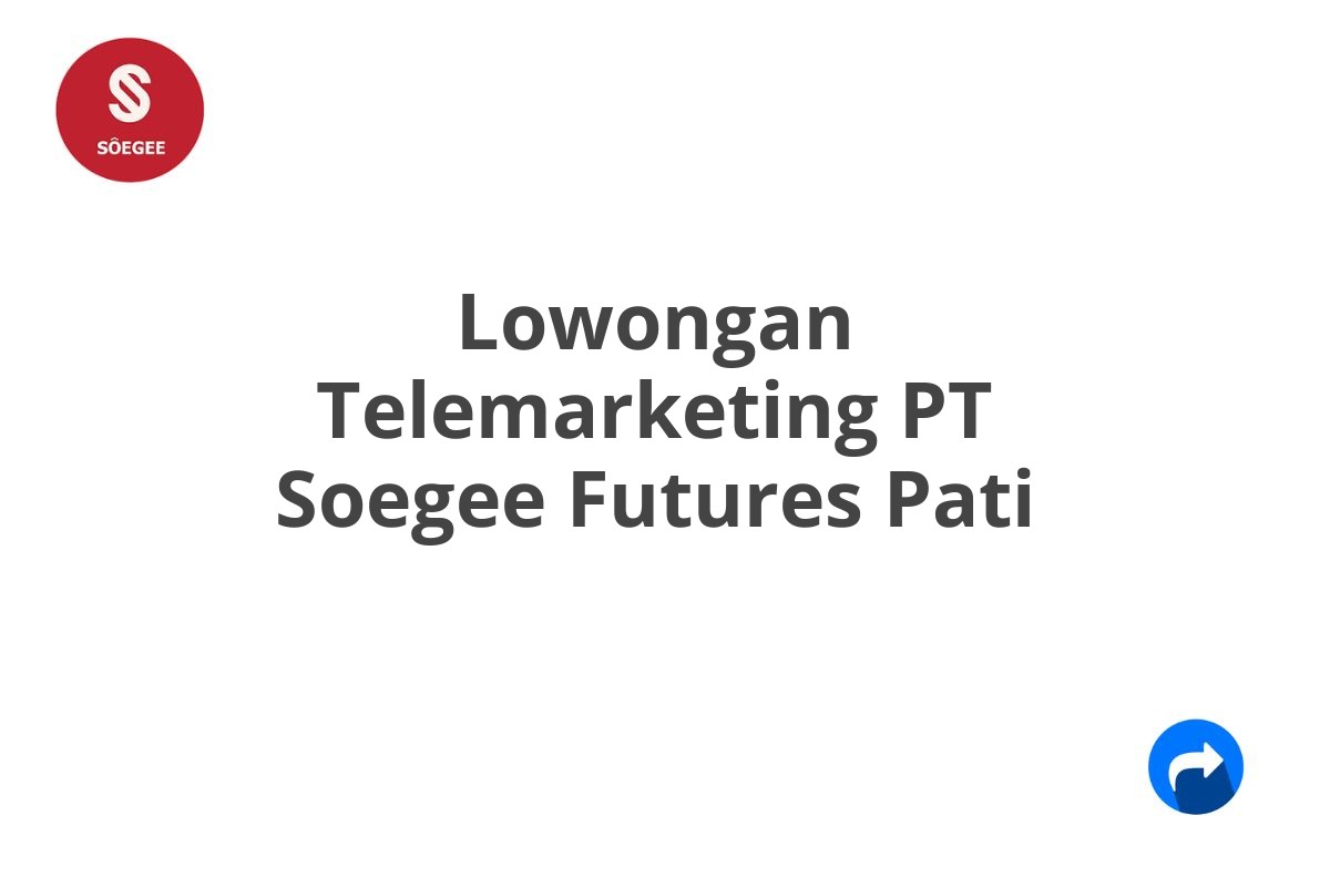 PT Soegee Futures Pati membuka lowongan kerja untuk posisi Telemarketing guna memperkuat tim marketing dan meningkatkan layanan kepada para klien.