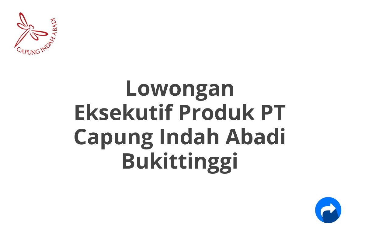 Lowongan Eksekutif Produk PT Capung Indah Abadi Bukittinggi Tahun 2026 [Cepat]