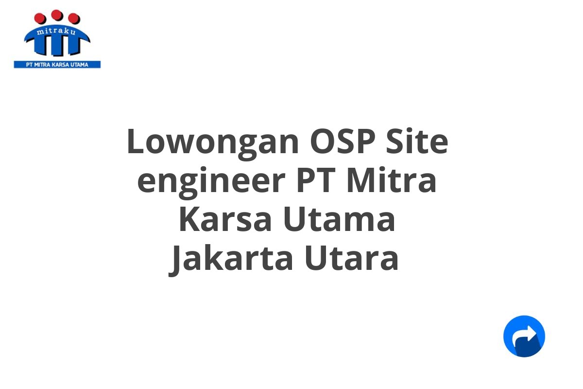 Lowongan OSP Site Engineer PT Mitra Karsa Utama Jakarta Utara