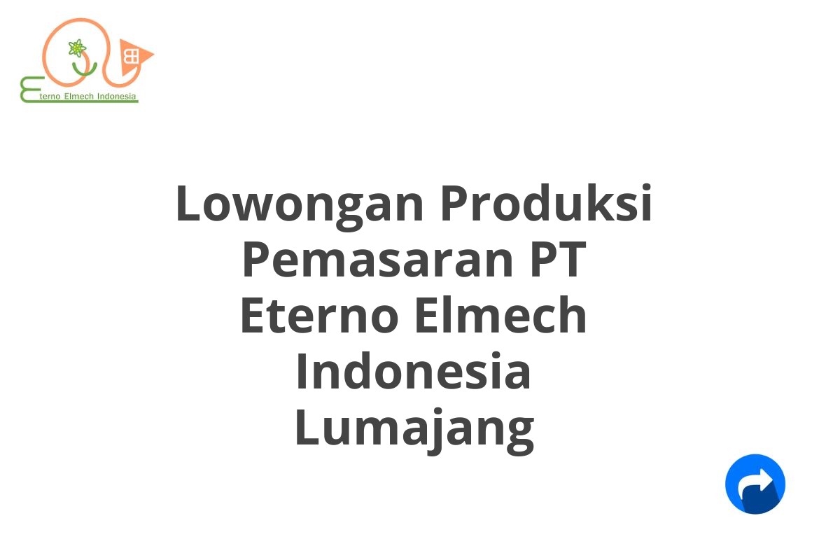 Saat ini, PT Eterno Elmech Indonesia sedang membuka lowongan kerja untuk posisi Produksi Pemasaran di Lumajang, Jawa Timur. Ini adalah kesempatan terbaik bagi Anda yang bersemangat dan ingin berkembang di bidang pemasaran dan produksi.