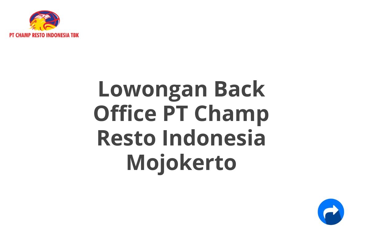 Lowongan Back Office PT Champ Resto Indonesia Mojokerto ini menawarkan kesempatan berkarir yang menjanjikan bagi Anda yang memiliki kemampuan administrasi dan keinginan untuk berkembang di perusahaan terkemuka di bidang kuliner. Informasi di atas merupakan gambaran umum, untuk informasi paling akurat dan terbaru, silakan kunjungi website resmi PT Champ Resto Indonesia. Ingat, semua lowongan kerja ini tidak dipungut biaya apapun.