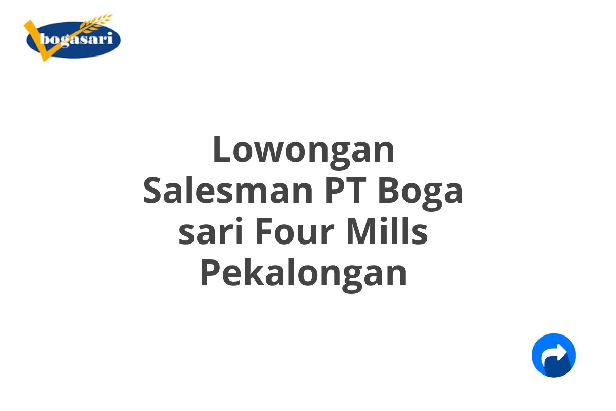 PT Boga Sari Four Mills sedang membuka lowongan kerja untuk posisi Salesman dengan tujuan memperluas jaringan pemasaran dan menjangkau lebih banyak pelanggan.