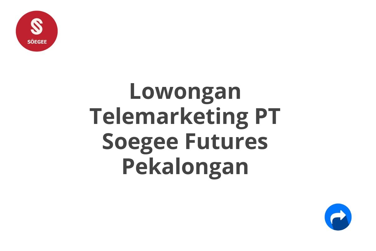 Ingin membangun karir di bidang telemarketing dengan gaji yang menjanjikan? PT Soegee Futures Pekalongan membuka kesempatan emas untukmu! Artikel ini akan membahas secara detail mengenai lowongan telemarketing di PT Soegee Futures Pekalongan, mulai dari profil perusahaan, kualifikasi yang dibutuhkan, hingga cara melamar. Yuk, simak selengkapnya!