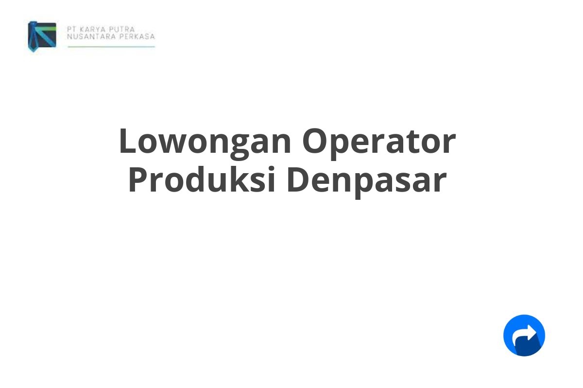 Saat ini, PT Karya Putra Nusantara Perkasa sedang membuka lowongan kerja untuk posisi Operator Produksi di Denpasar, Bali.