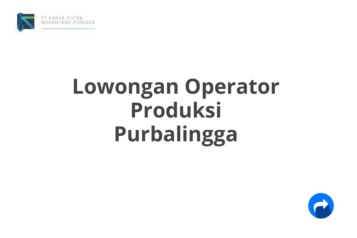 Saat ini, PT Karya Putra Nusantara Perkasa sedang membuka lowongan kerja untuk posisi Operator Produksi di Purbalingga.