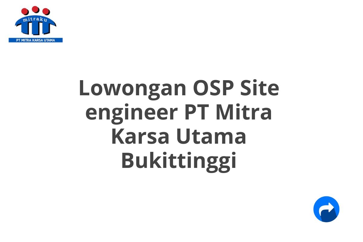 Saat ini, PT Mitra Karsa Utama membuka lowongan pekerjaan untuk posisi OSP Site Engineer yang berlokasi di Bukittinggi. Ini adalah kesempatan emas bagi Anda yang memiliki passion di bidang teknologi dan ingin berkontribusi pada perkembangan perusahaan yang berkembang pesat.