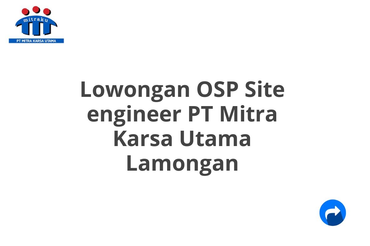 Saat ini, PT Mitra Karsa Utama sedang membuka lowongan kerja untuk posisi OSP Site Engineer di Lamongan.