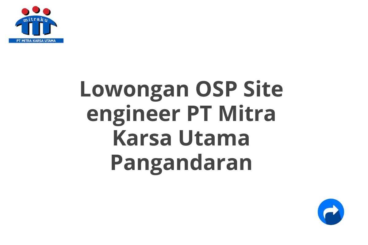 Lowongan OSP Site Engineer PT Mitra Karsa Utama Pangandaran
