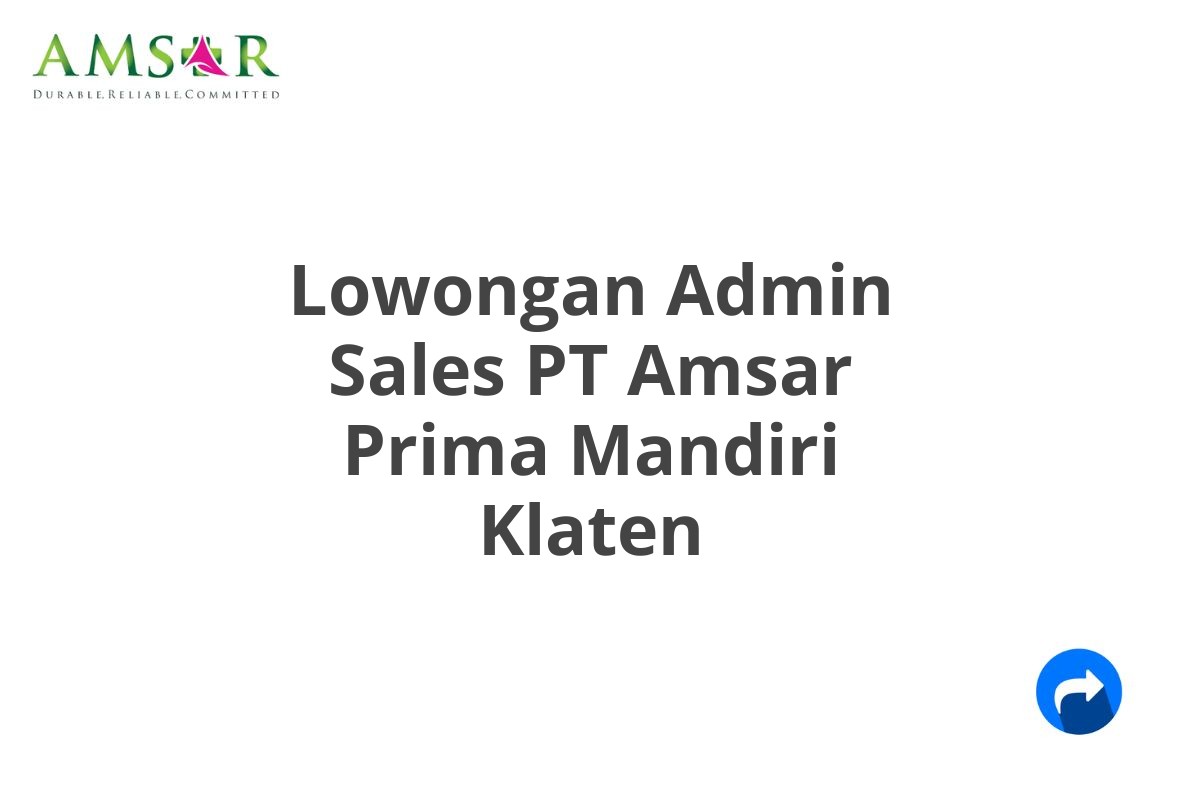 Lowongan Admin Sales PT Amsar Prima Mandiri Klaten