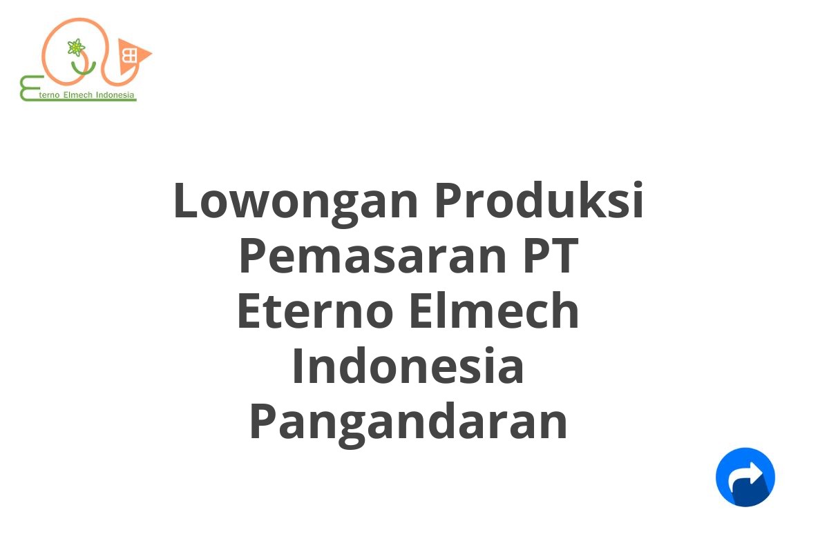 Saat ini, PT Eterno Elmech Indonesia sedang membuka lowongan kerja untuk posisi Produksi Pemasaran yang berlokasi di Pangandaran.