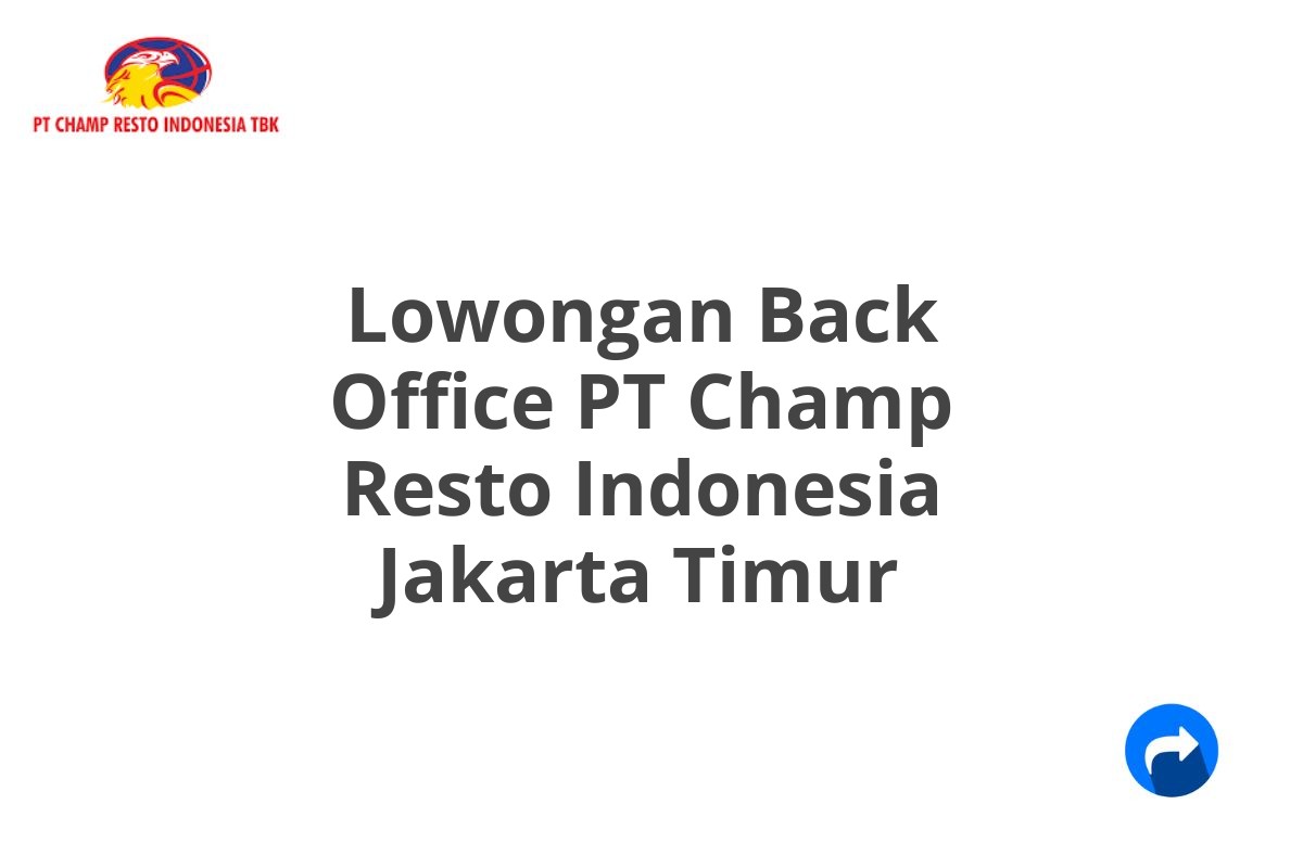 Lowongan Back Office PT Champ Resto Indonesia Jakarta Timur