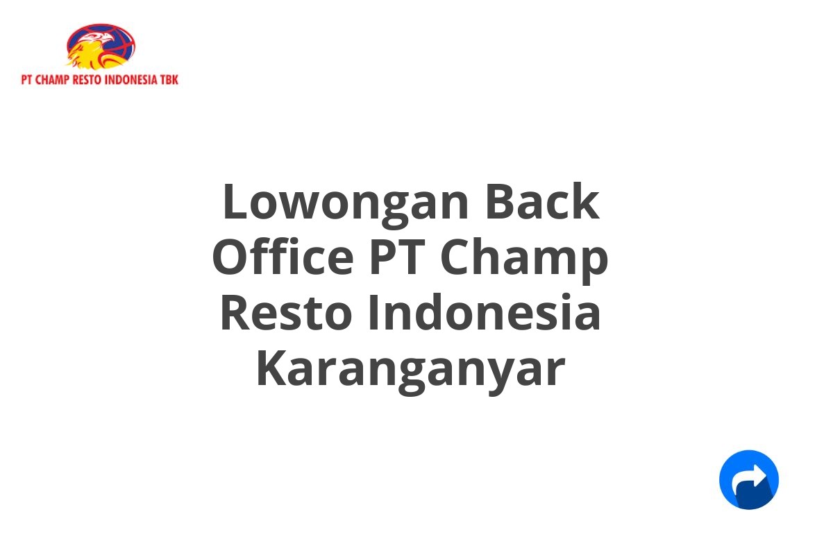 Lowongan Back Office PT Champ Resto Indonesia Karanganyar Terbaru [Cepat]