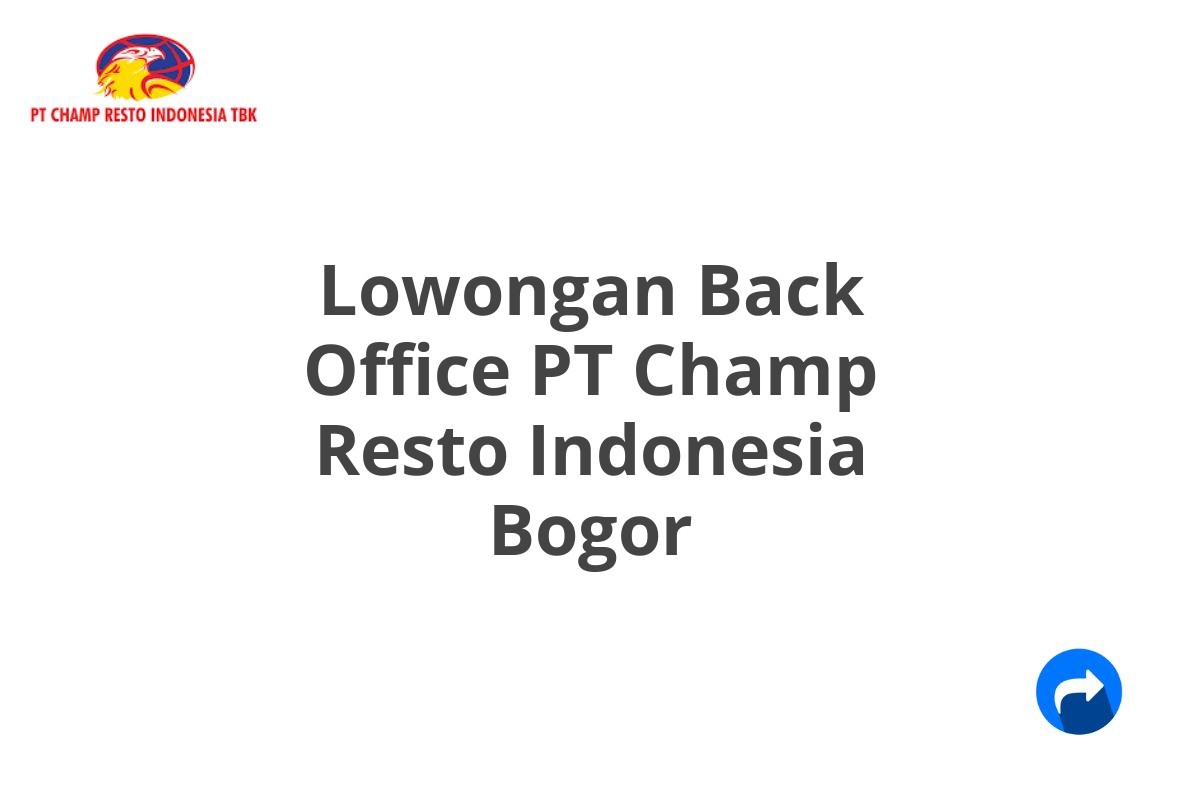 Lowongan Back Office PT Champ Resto Indonesia Bogor