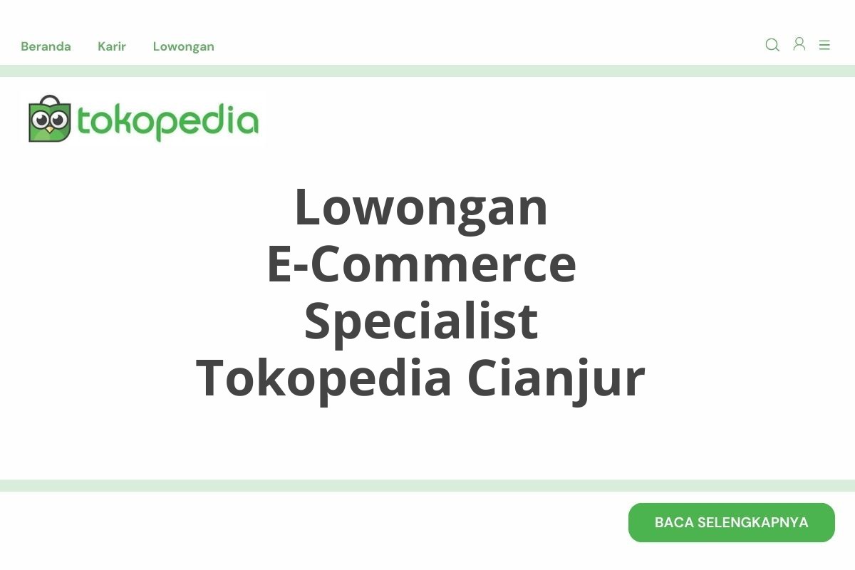 Lowongan E-Commerce Specialist Tokopedia Cianjur Terbaru 2026