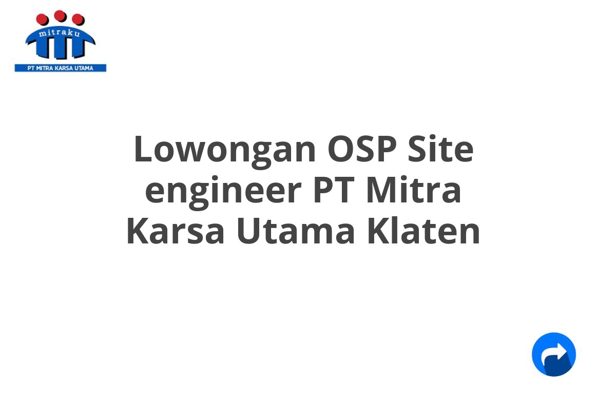Saat ini, PT Mitra Karsa Utama membuka lowongan pekerjaan untuk posisi OSP Site Engineer di Klaten. Ini merupakan peluang besar bagi Anda yang memiliki passion di bidang infrastruktur telekomunikasi dan ingin berkontribusi dalam perusahaan yang berkembang pesat.