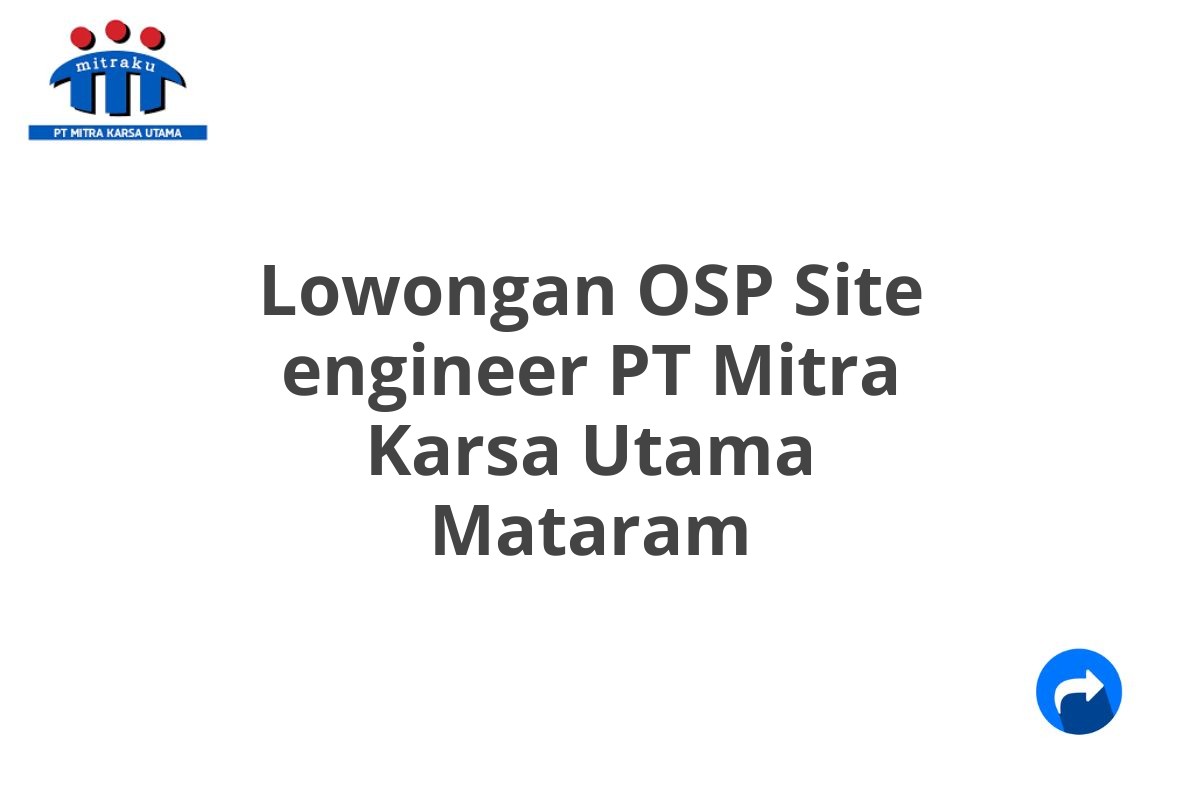 Saat ini, PT Mitra Karsa Utama sedang membuka lowongan pekerjaan untuk posisi OSP Site Engineer di Mataram.