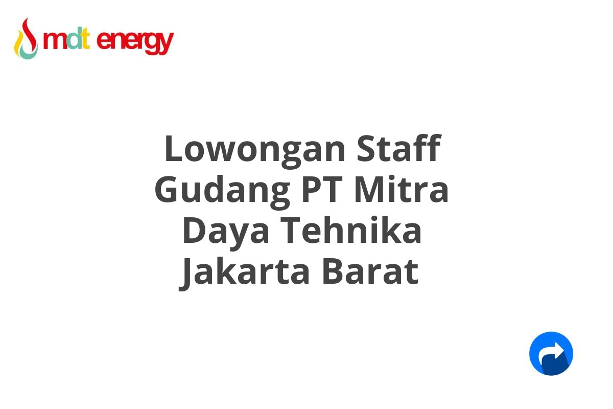Saat ini, PT Mitra Daya Tehnika sedang membuka lowongan kerja untuk posisi Staff Gudang yang akan ditempatkan di Jakarta Barat.