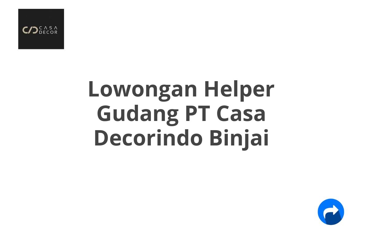 Saat ini, PT Casa Decorindo Binjai sedang membuka lowongan kerja untuk posisi Helper Gudang guna memperkuat tim dan menunjang operasional gudang yang semakin berkembang.