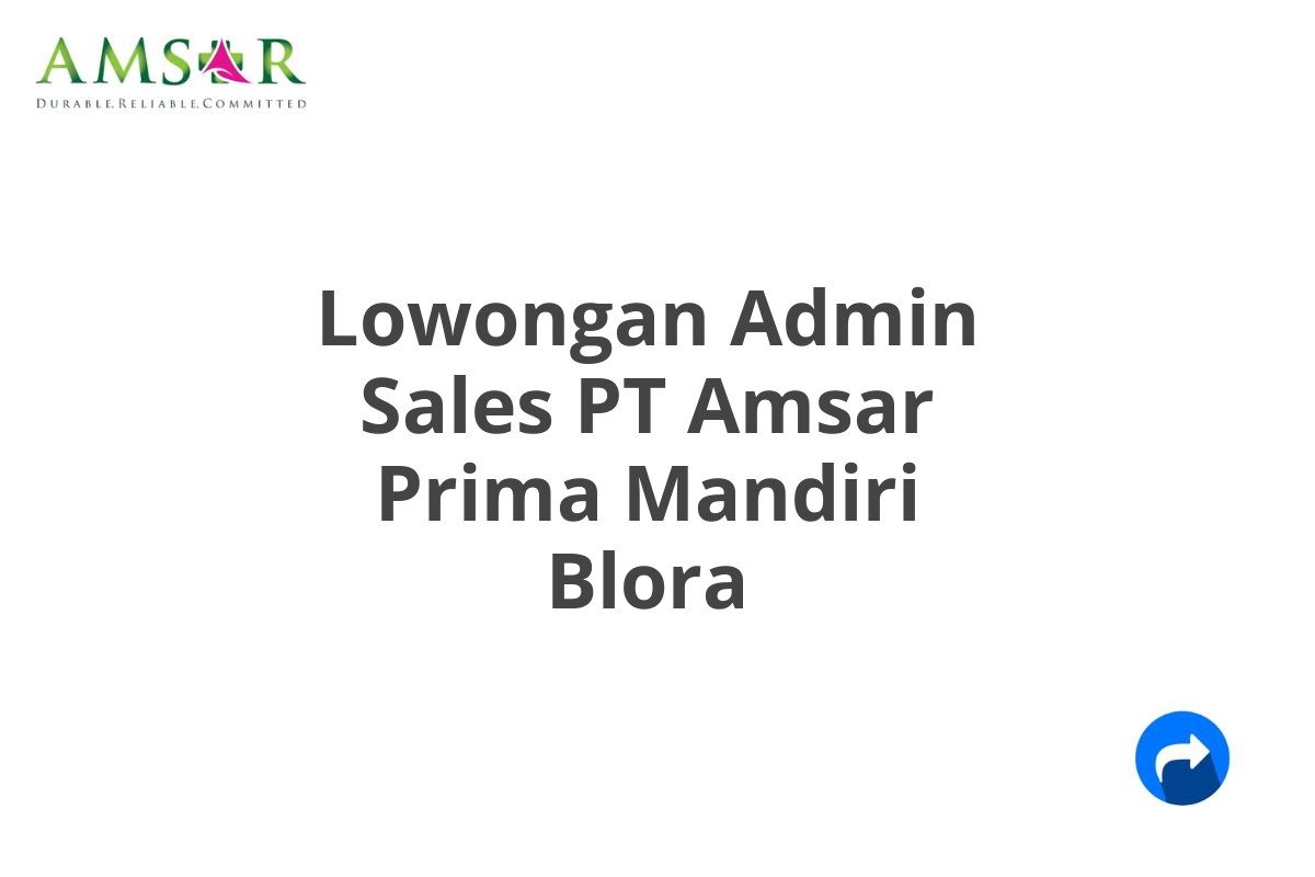 Saat ini, PT Amsar Prima Mandiri sedang membuka lowongan untuk posisi Admin Sales yang berlokasi di Blora.