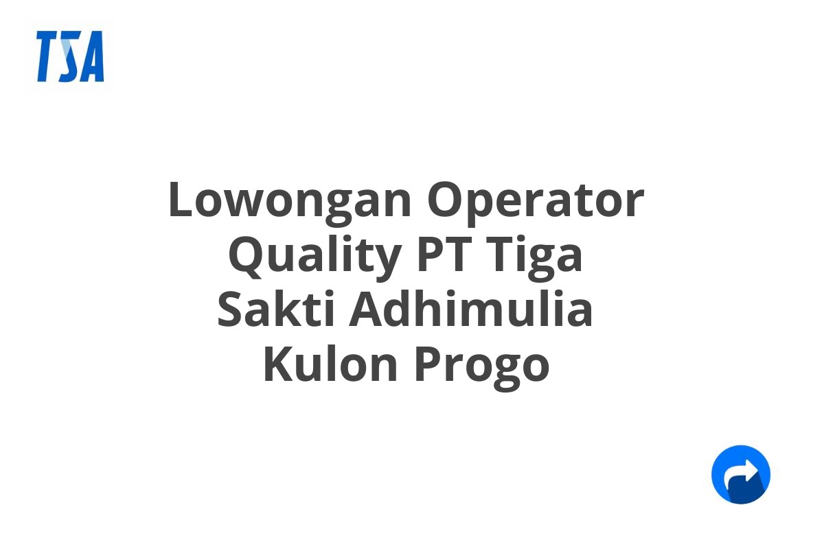 Saat ini, PT Tiga Sakti Adhimulia sedang membuka lowongan kerja untuk posisi Operator Quality di cabang Kulon Progo.