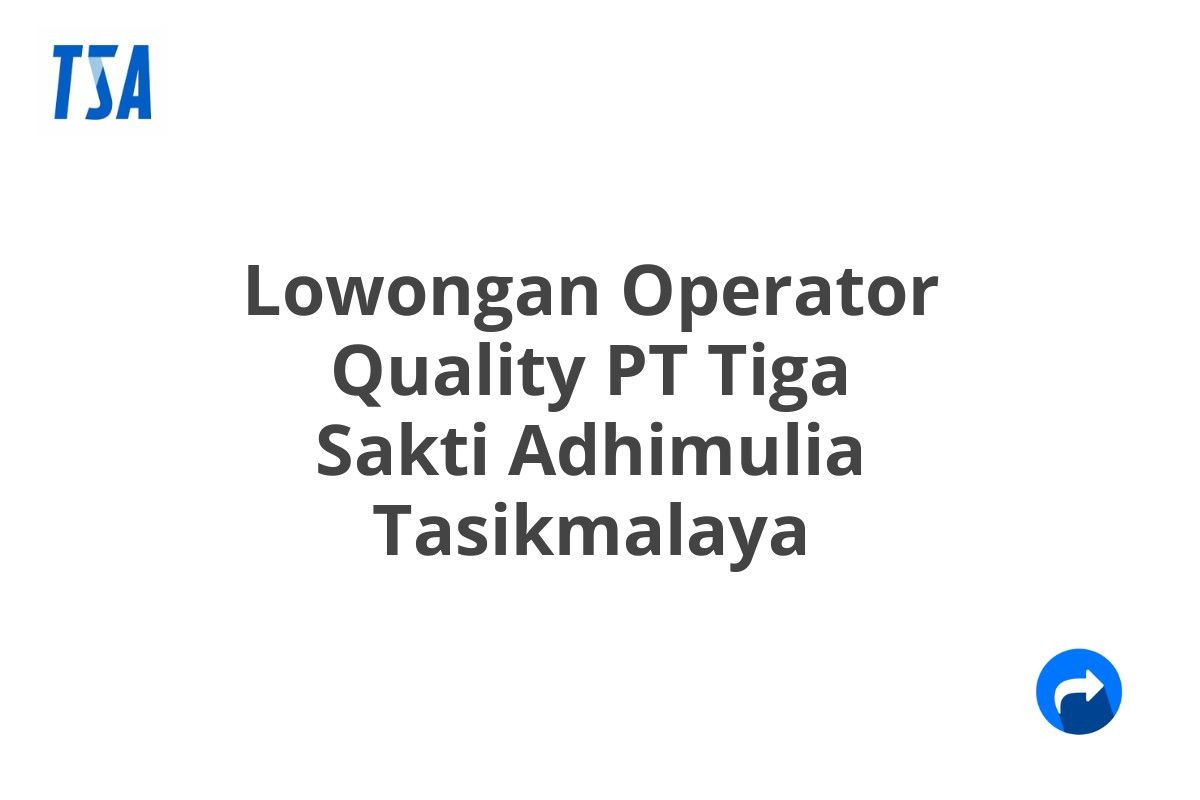 Lowongan Operator Quality PT Tiga Sakti Adhimulia Tasikmalaya