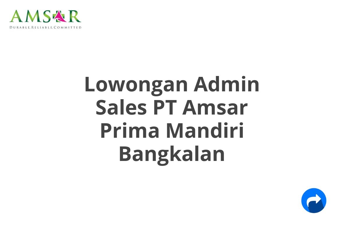 Lowongan Admin Sales PT Amsar Prima Mandiri Bangkalan Tahun 2026 [Apply]