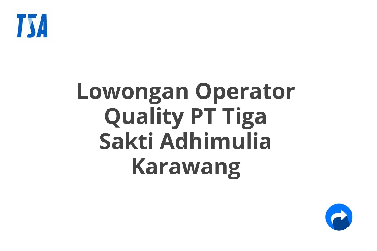 Lowongan Operator Quality PT Tiga Sakti Adhimulia Karawang Tahun 2026 [Update]
