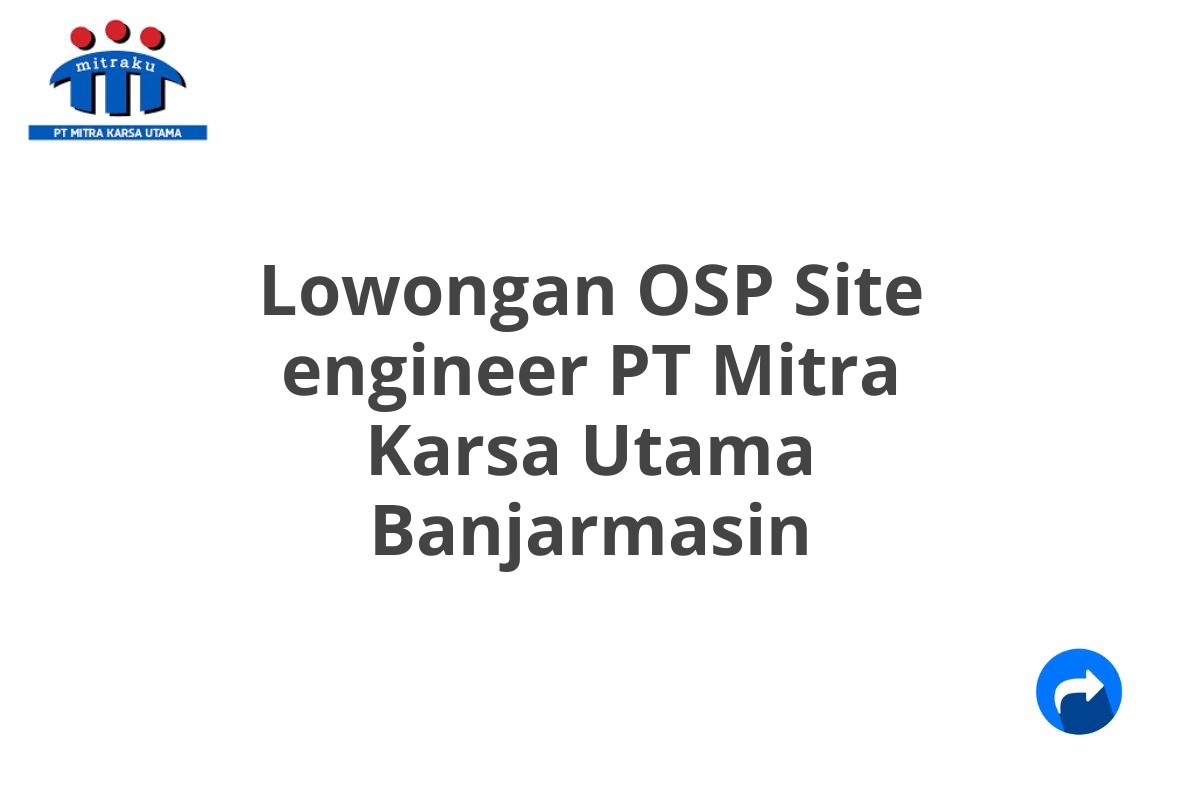 Lowongan OSP Site engineer PT Mitra Karsa Utama Banjarmasin Tahun 2026 [Resmi]