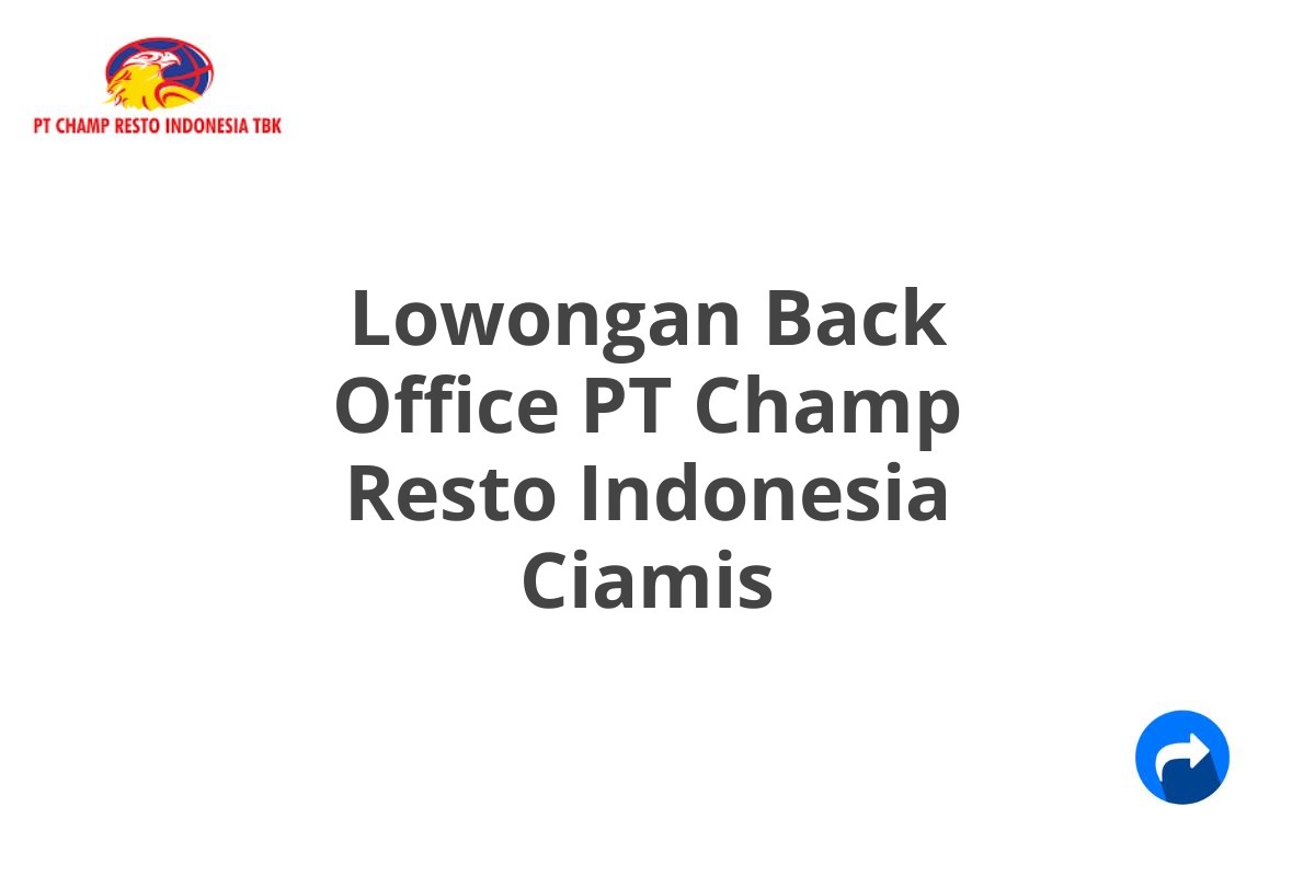 Saat ini, PT Champ Resto Indonesia sedang membuka lowongan kerja untuk posisi Back Office di Ciamis, Jawa Barat, untuk mendukung operasional dan administrasi perusahaan.
