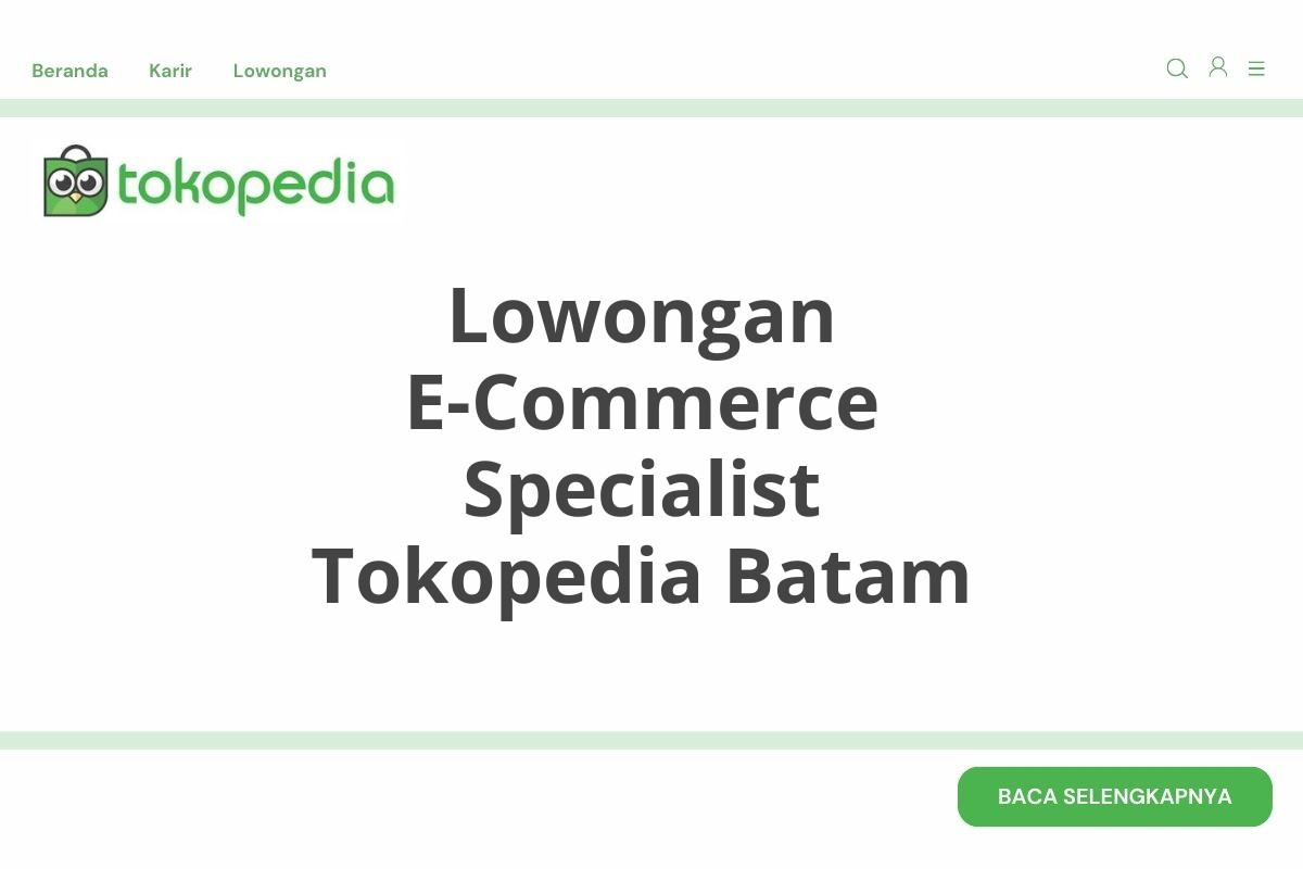 Ingin gaji fantastis dan pengalaman kerja yang menjanjikan di dunia E-commerce? Tokopedia, perusahaan teknologi terkemuka di Indonesia, membuka lowongan untuk posisi E-Commerce Specialist di Batam!