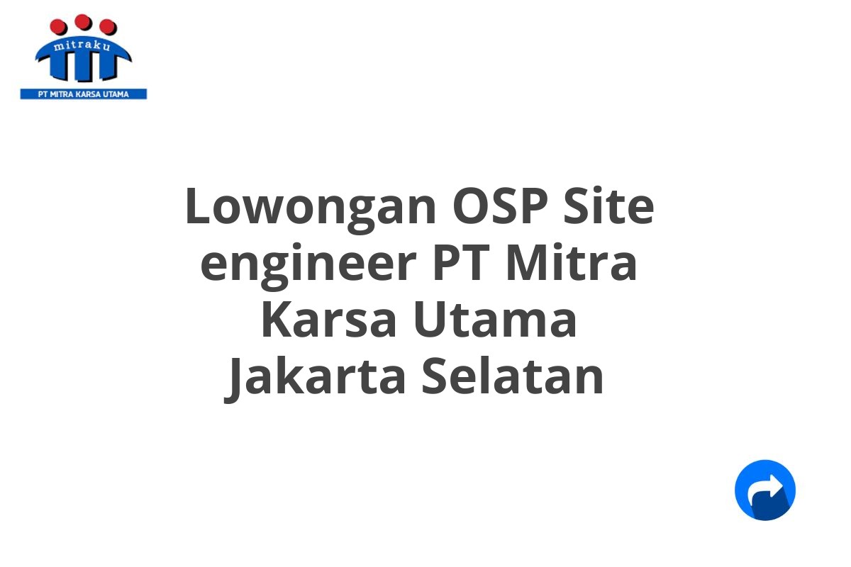 Lowongan OSP Site Engineer PT Mitra Karsa Utama Jakarta Selatan