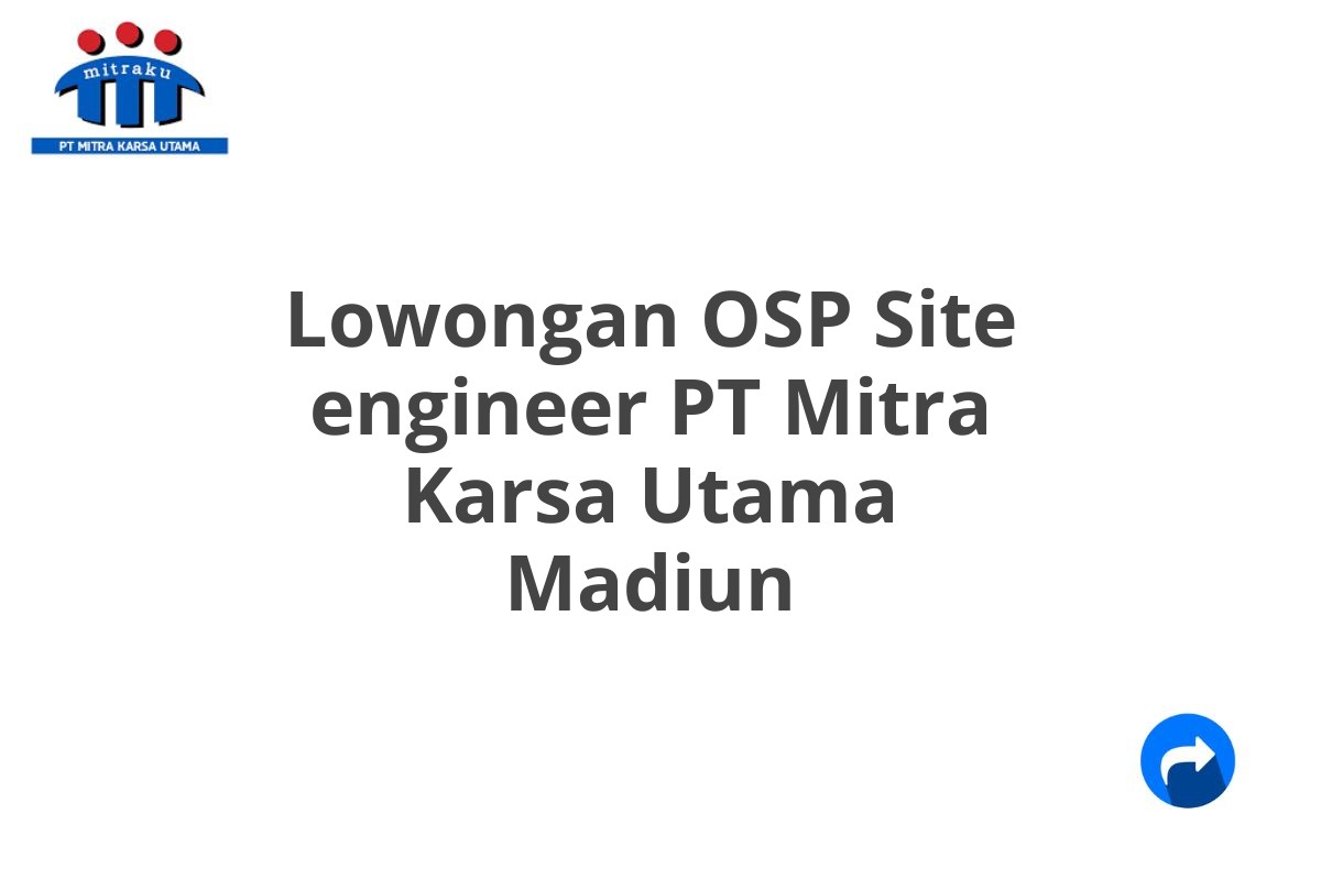 Saat ini, PT Mitra Karsa Utama membuka lowongan kerja untuk posisi OSP Site Engineer di Madiun, Jawa Timur, untuk mendukung pertumbuhan bisnis kami yang pesat.